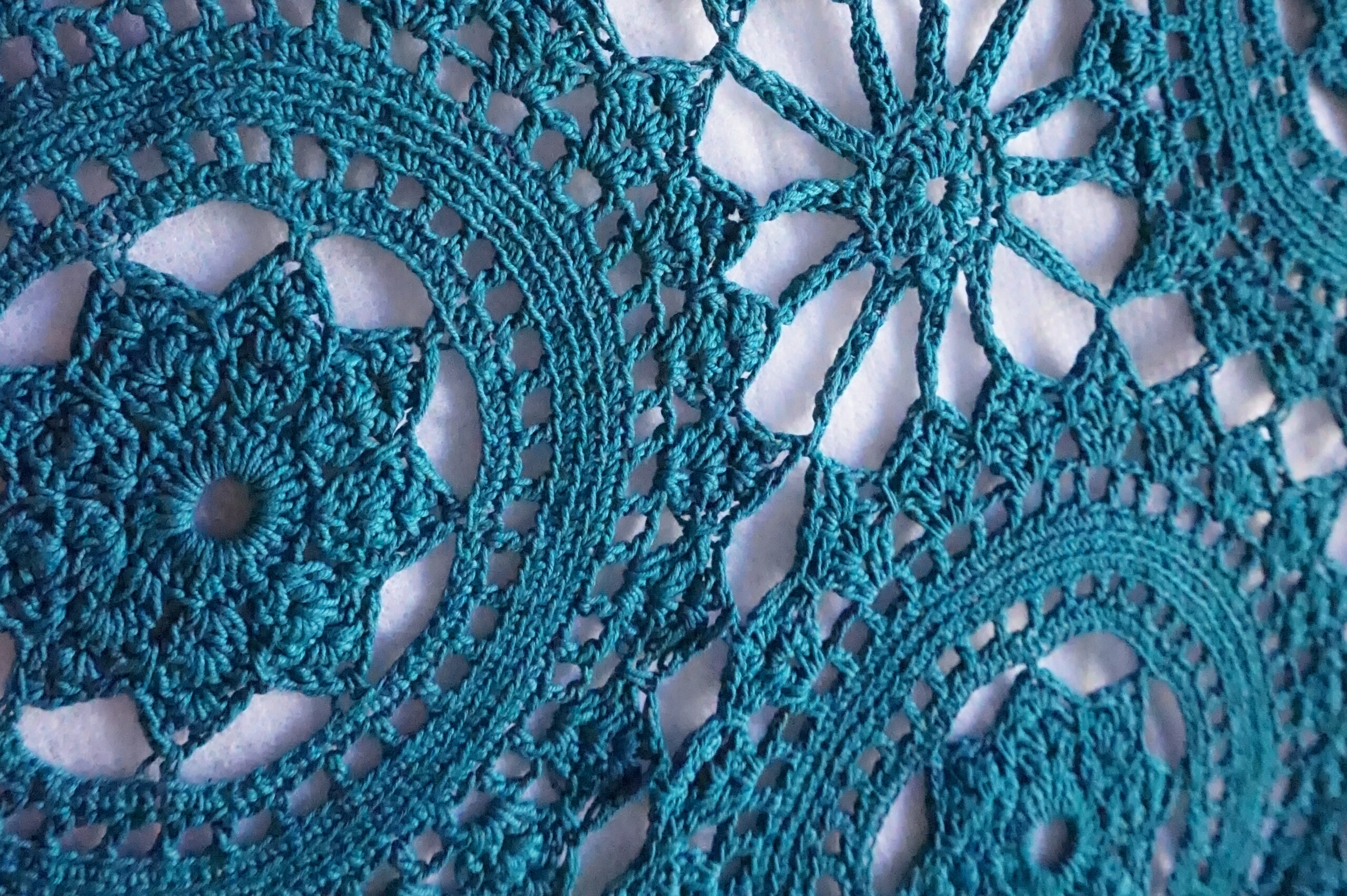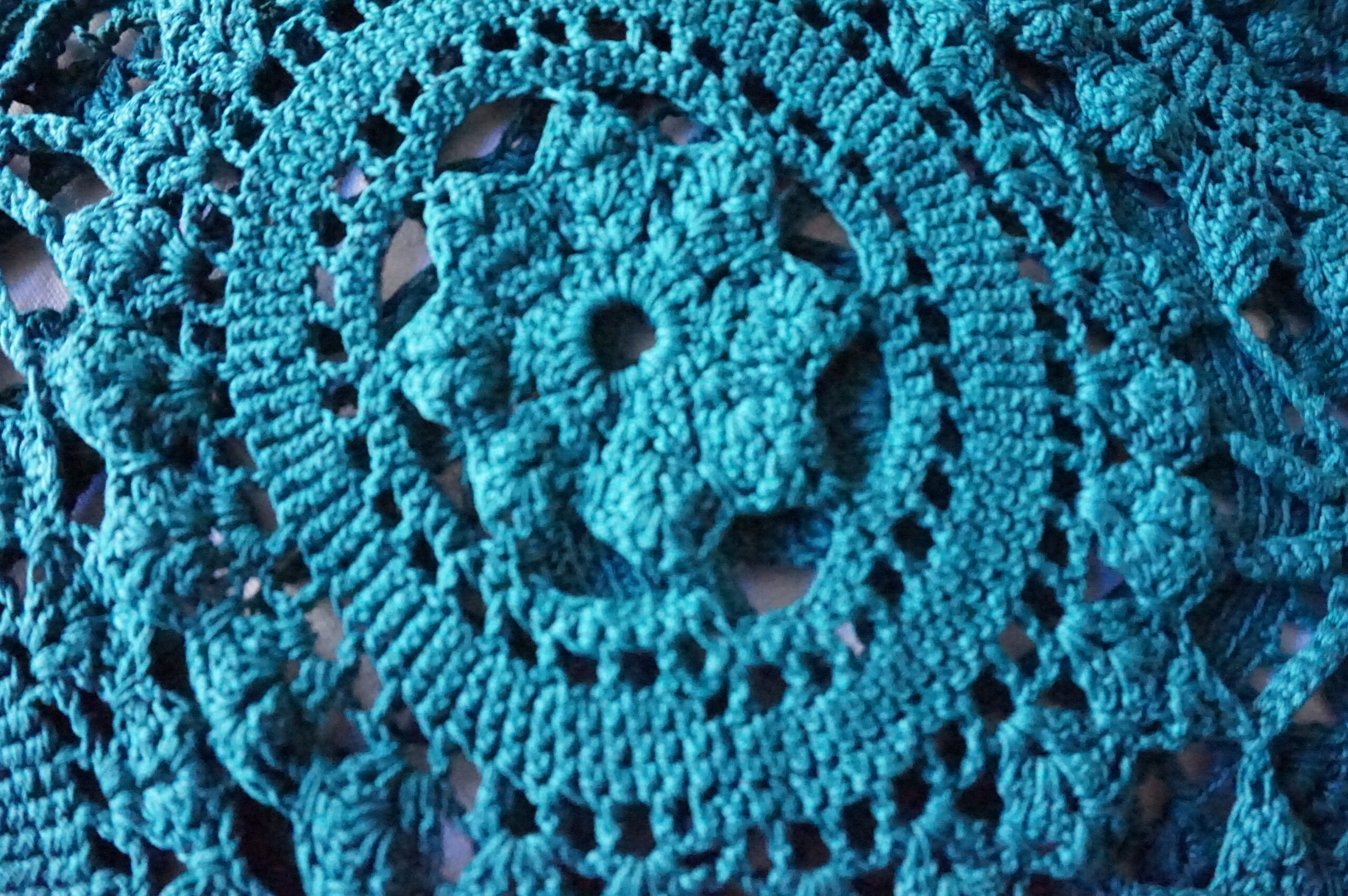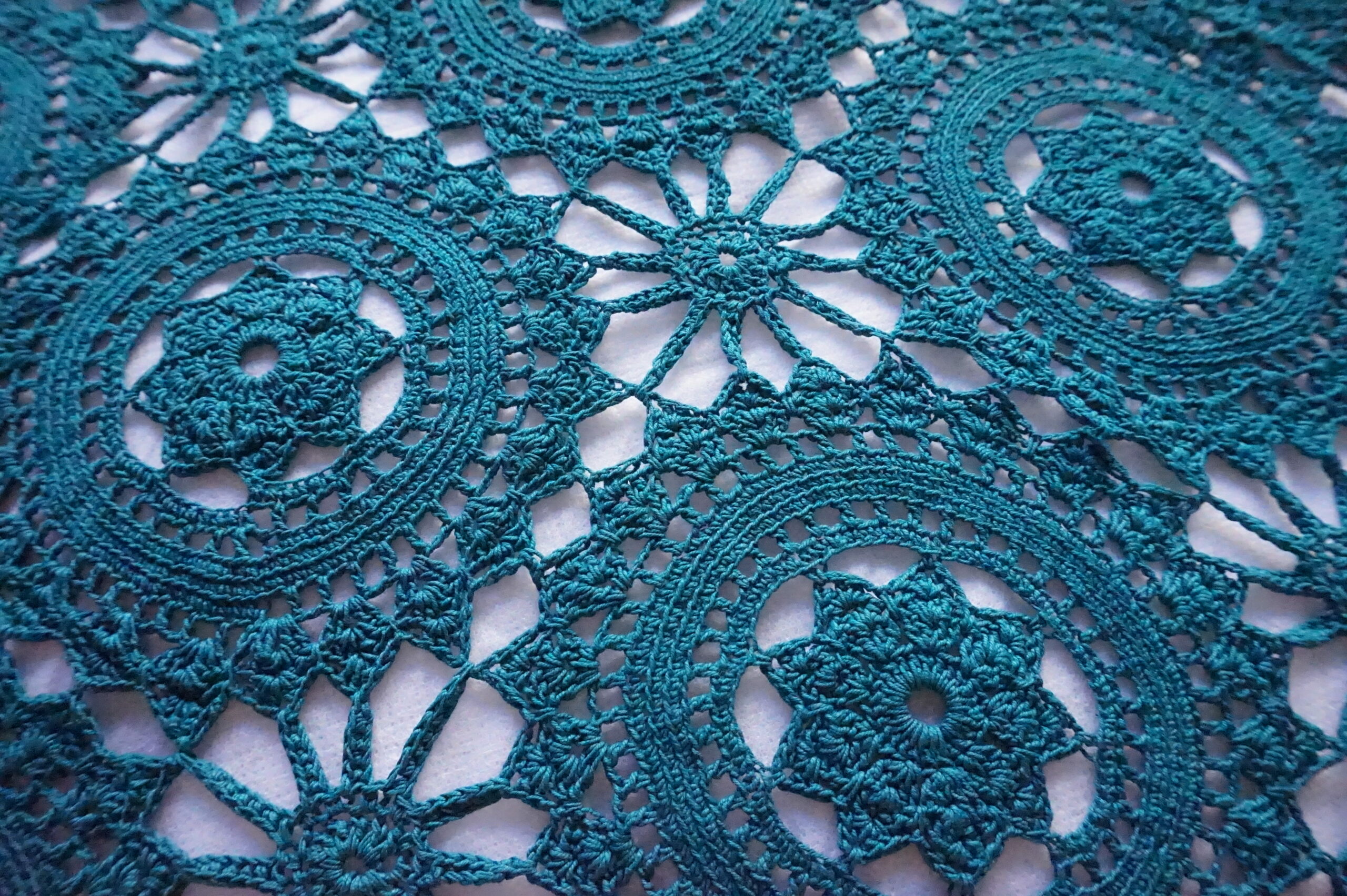Couvre‑lit ancien en crochet, teint émeraude – 200×210, franges Années 1930–1950