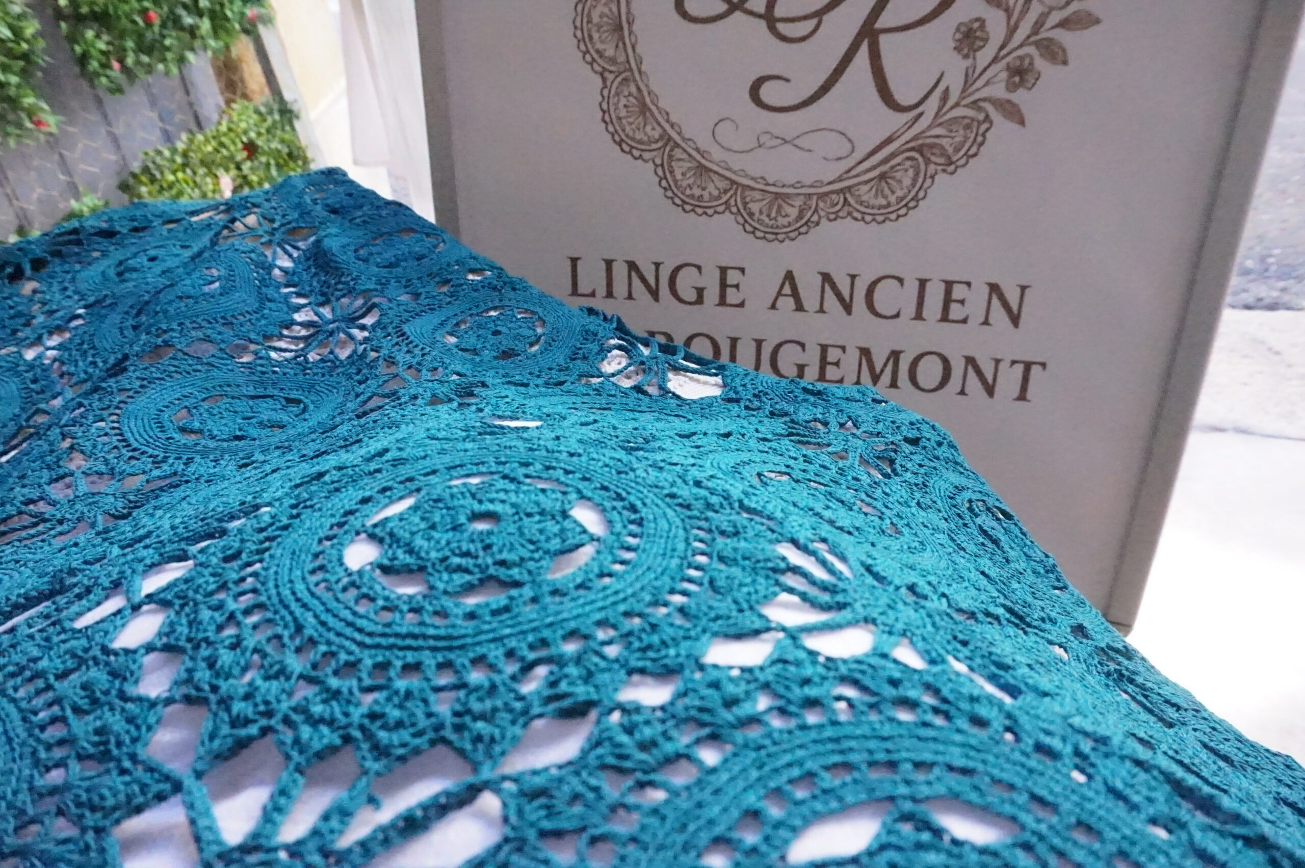 120,00 € Ajouter au panier120,00 €Couvre‑lit ancien en crochet, teint émeraude dans notre atelier. Dimensions 200×210 cm, bordures à franges, parfait état. Prix : 120 €