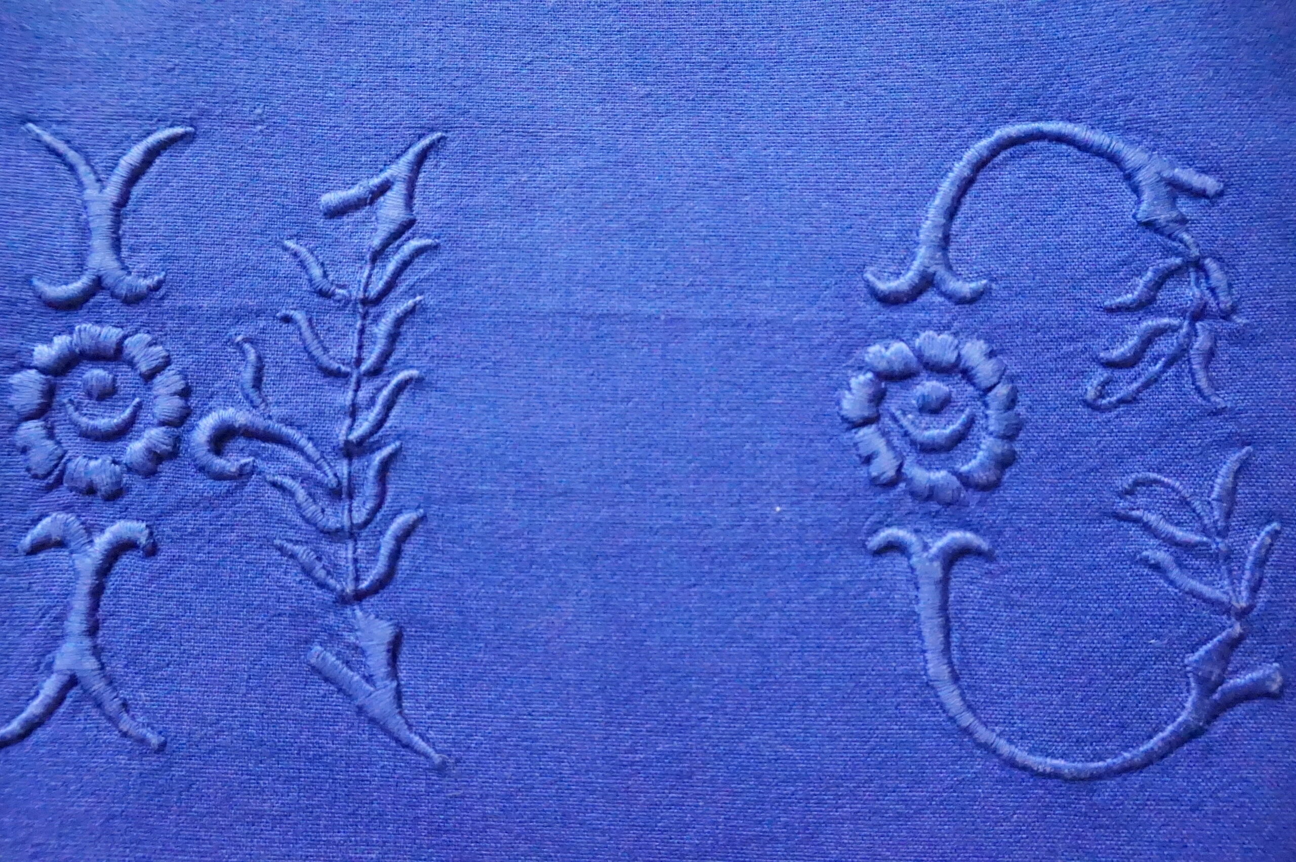 90,00 € Ajouter au panier90,00 €Drap ancien (années 1900–1930), monogramme HC imposant et délicat, teint dans notre atelier. Dimensions 195×250 cm, très bel état. Prix : 90 €