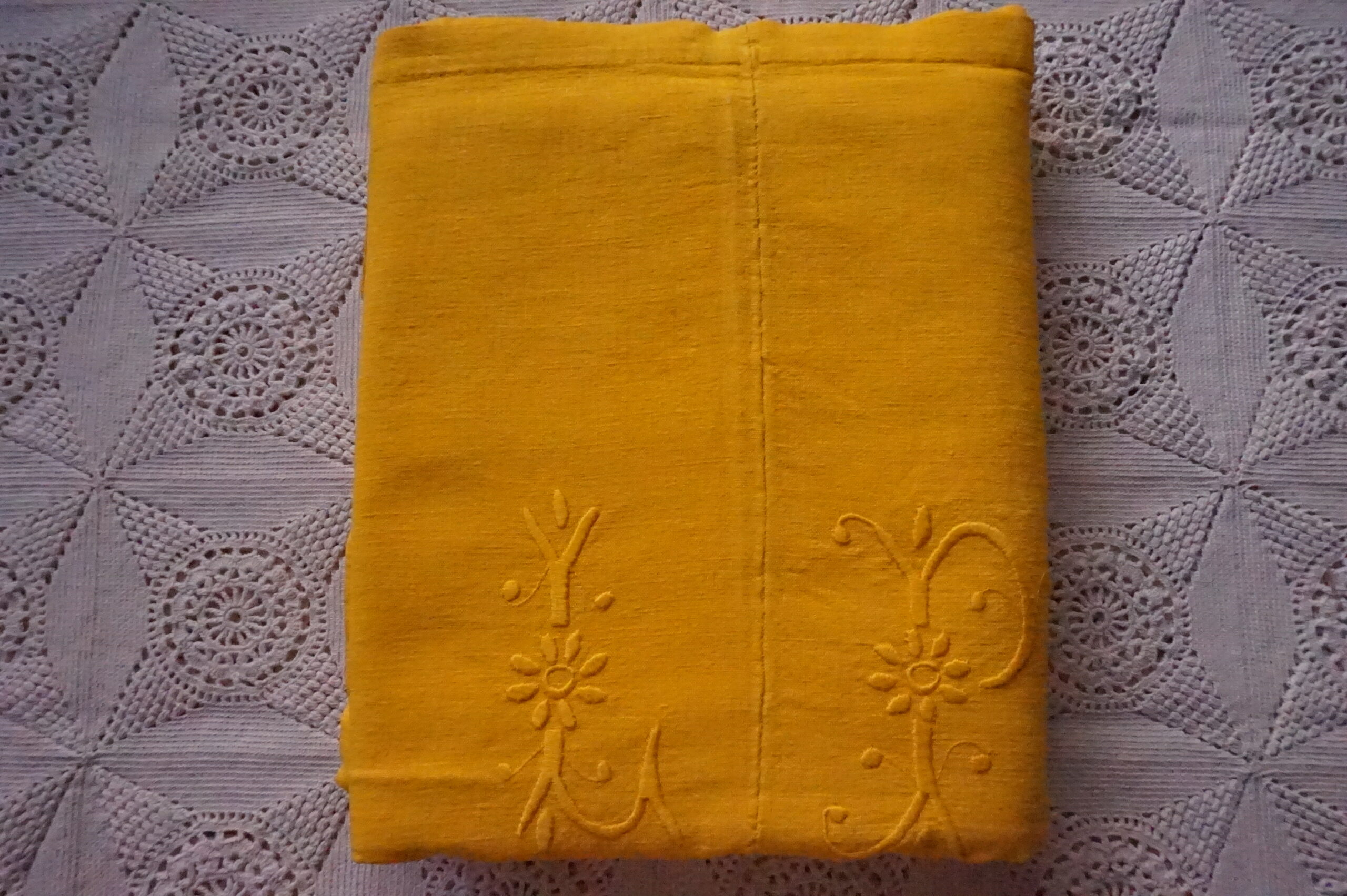 100,00 € Ajouter au panier100,00 €Drap ancien en lin/chanvre (années 1900–1930), en deux parties, monogramme LP imposant, teint jaune lumineux. Dimensions 200×260 cm, très bel état. Prix : 100 €