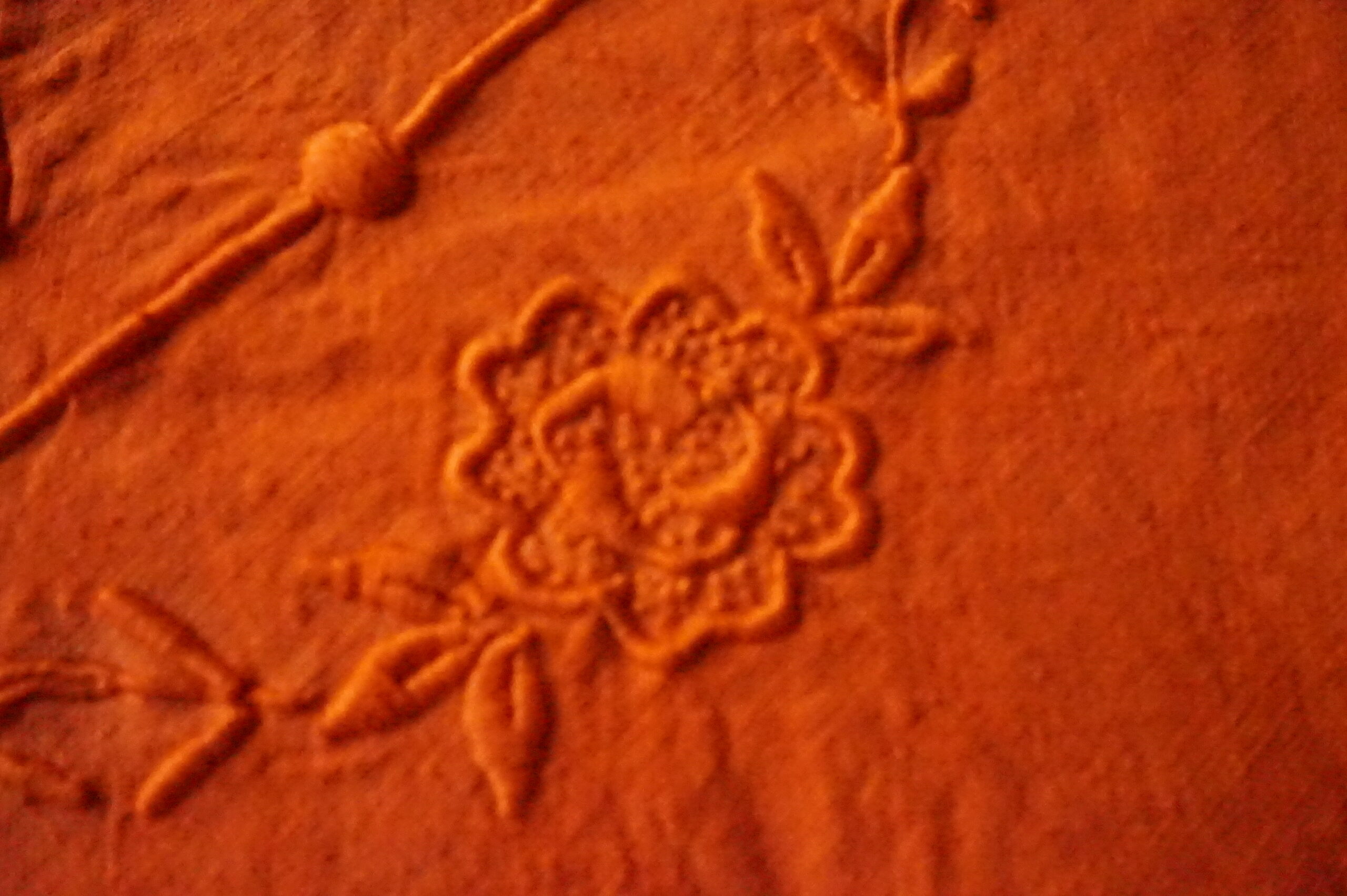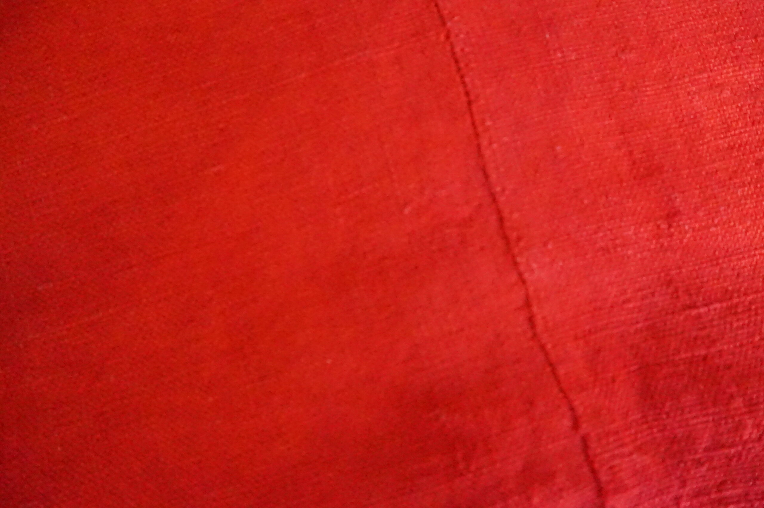Drap ancien en lin/chanvre en 2 parties, teint rouge léger/orange foncé –180×240(années 1900–1930)