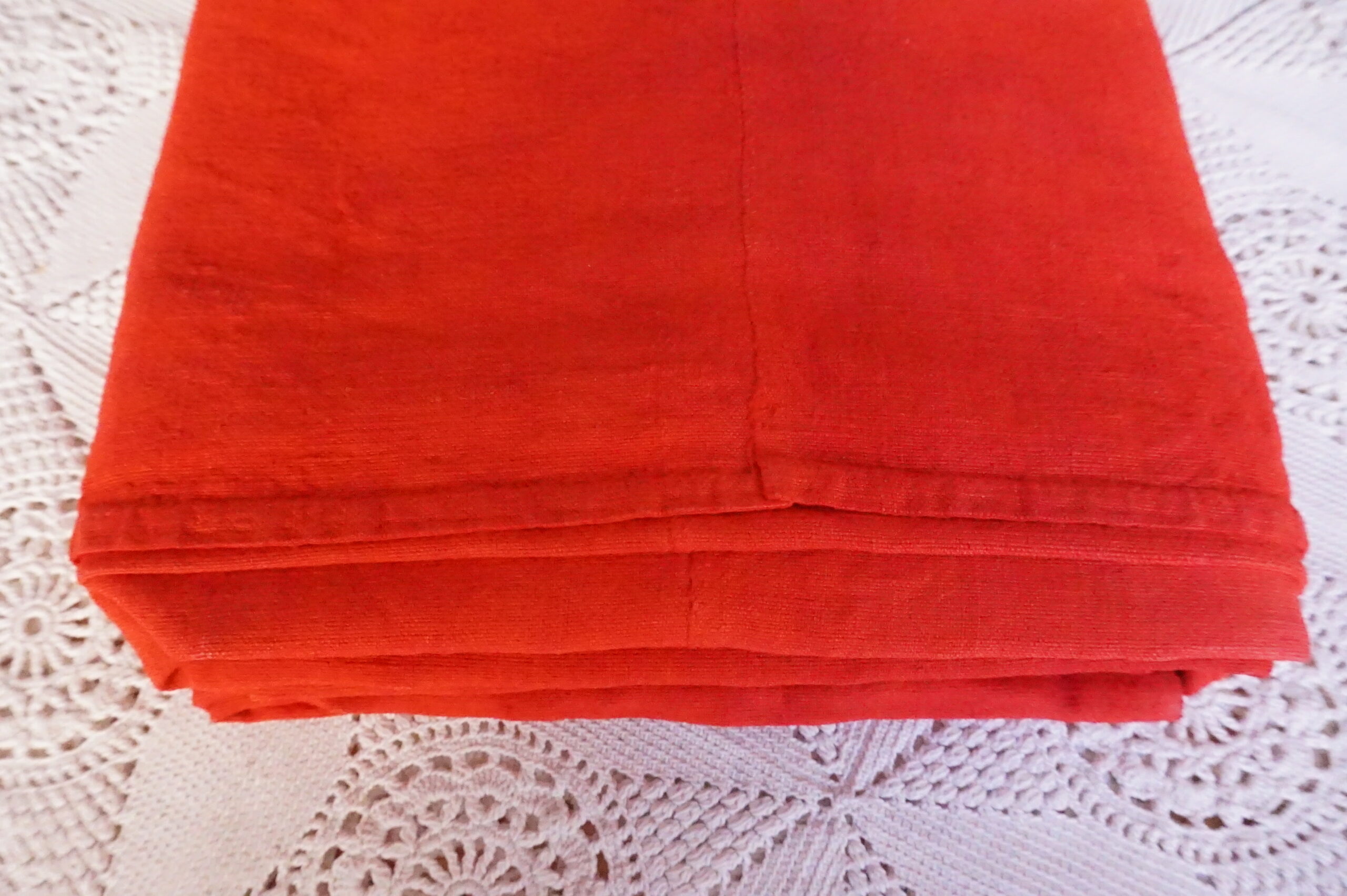 80,00 € Ajouter au panier80,00 €Drap ancien en lin/chanvre (années 1900–1930), en deux parties, teint dans une nuance rouge/orange. Dimensions 180×240 cm, très bel état. Prix : 80 €