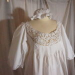 Chemise de nuit ancienne rare, entièrement travaillée de l’encolure jusqu’au bout des manches avec une magnifique dentelle. La pièce est délicate, féminine et d’une grande finesse.
