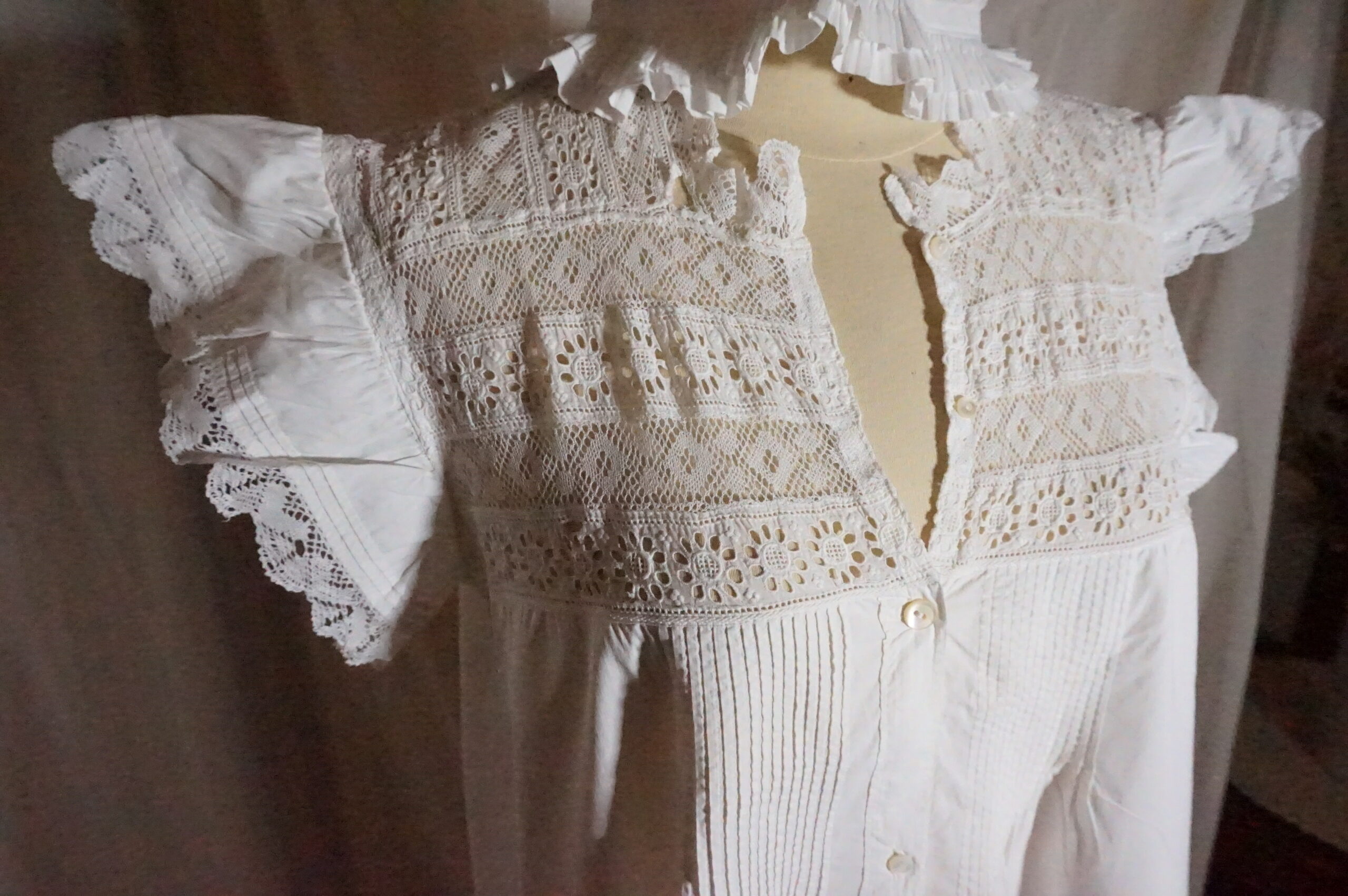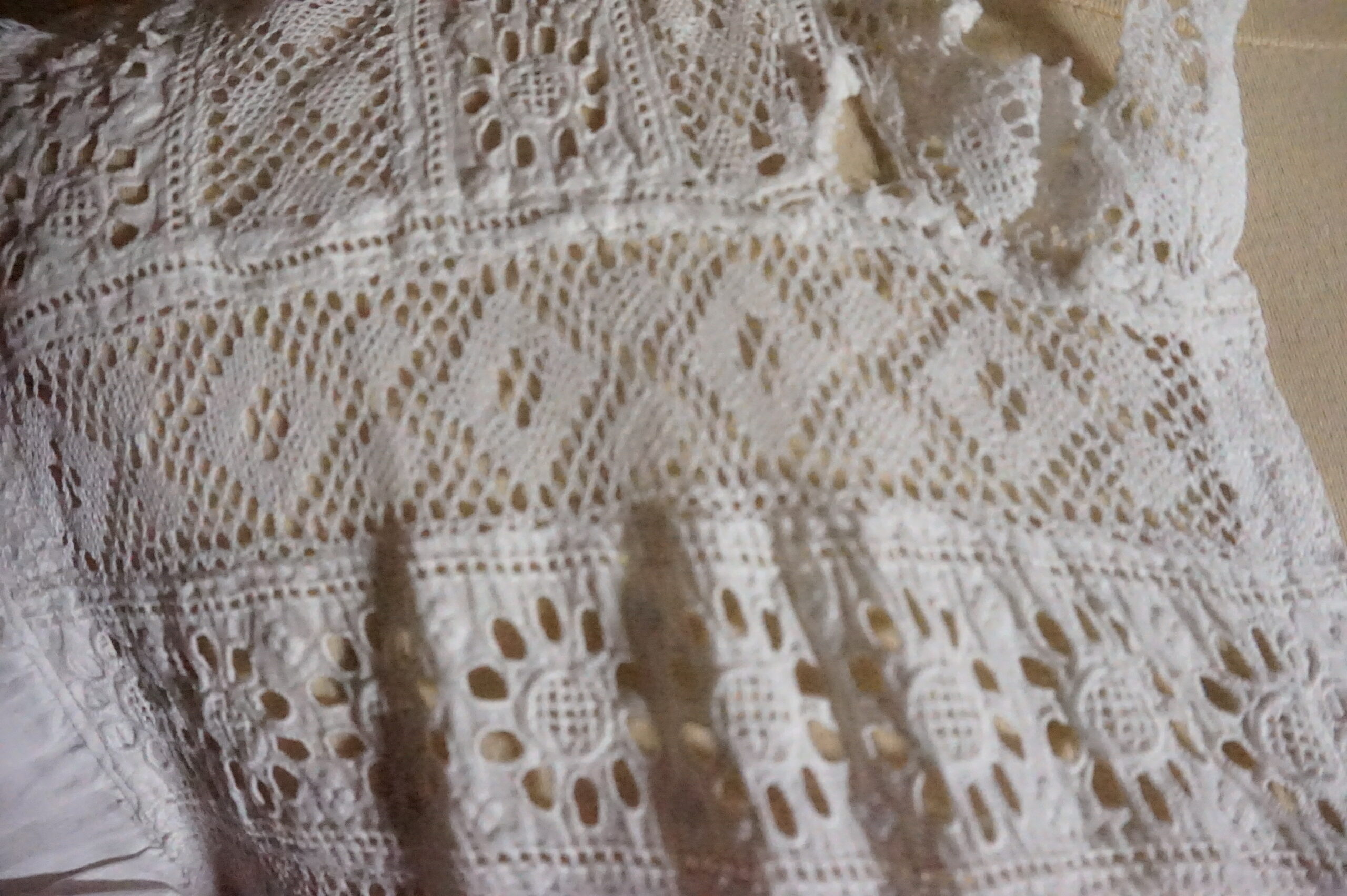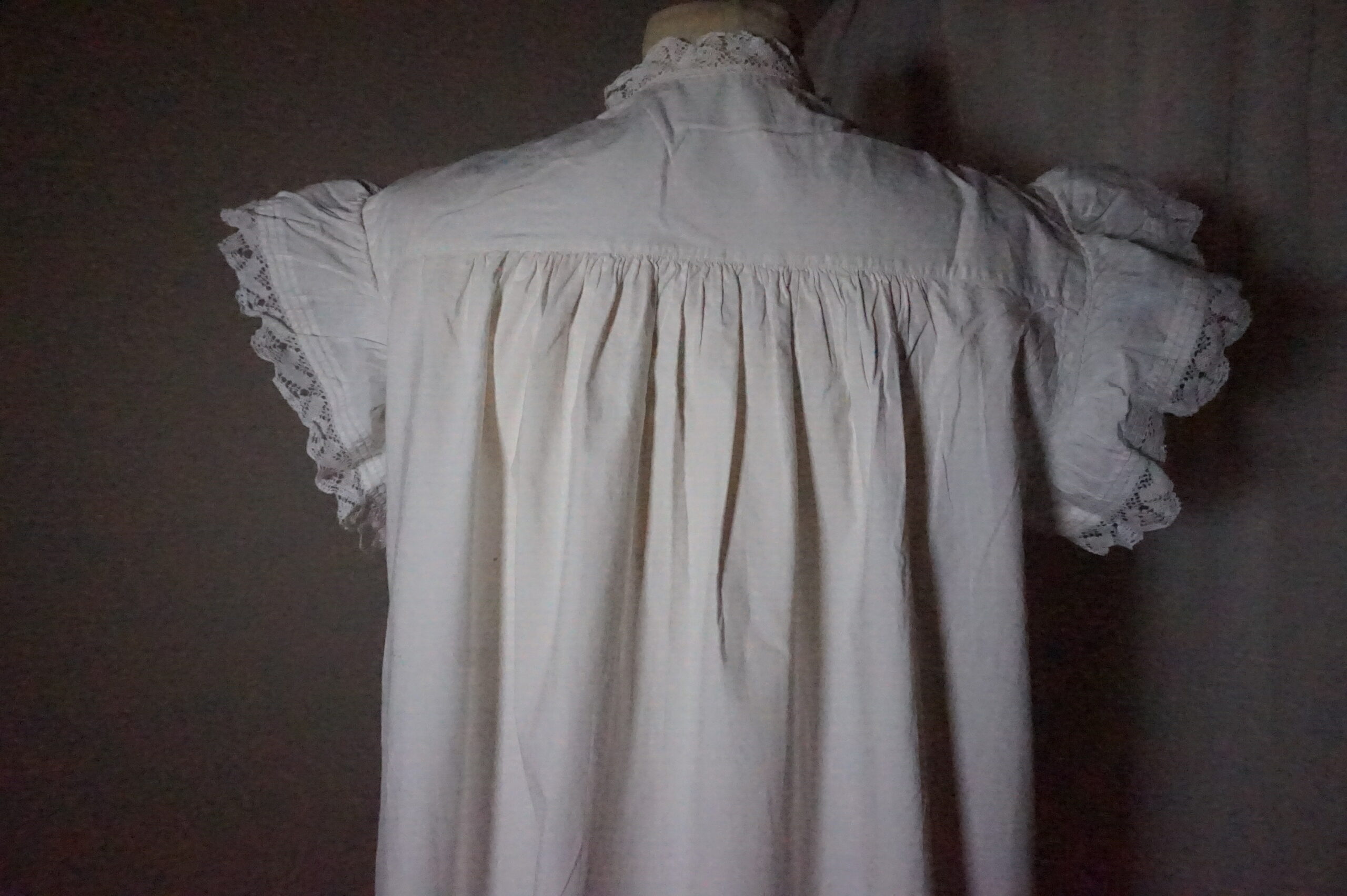 Chemise de nuit exceptionnelle provenant d’une magnifique demeure bourgeoise, d’une délicatesse rare, ce produit comporte néanmoins quelques petites traces du temps passé.