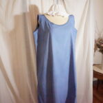 Chemise de nuit ancienne teintée en bleu, avec un joli travail de bordure qui apporte finesse et douceur à la pièce. Le tissu est souple, agréable, et la teinture lui donne un charme unique.