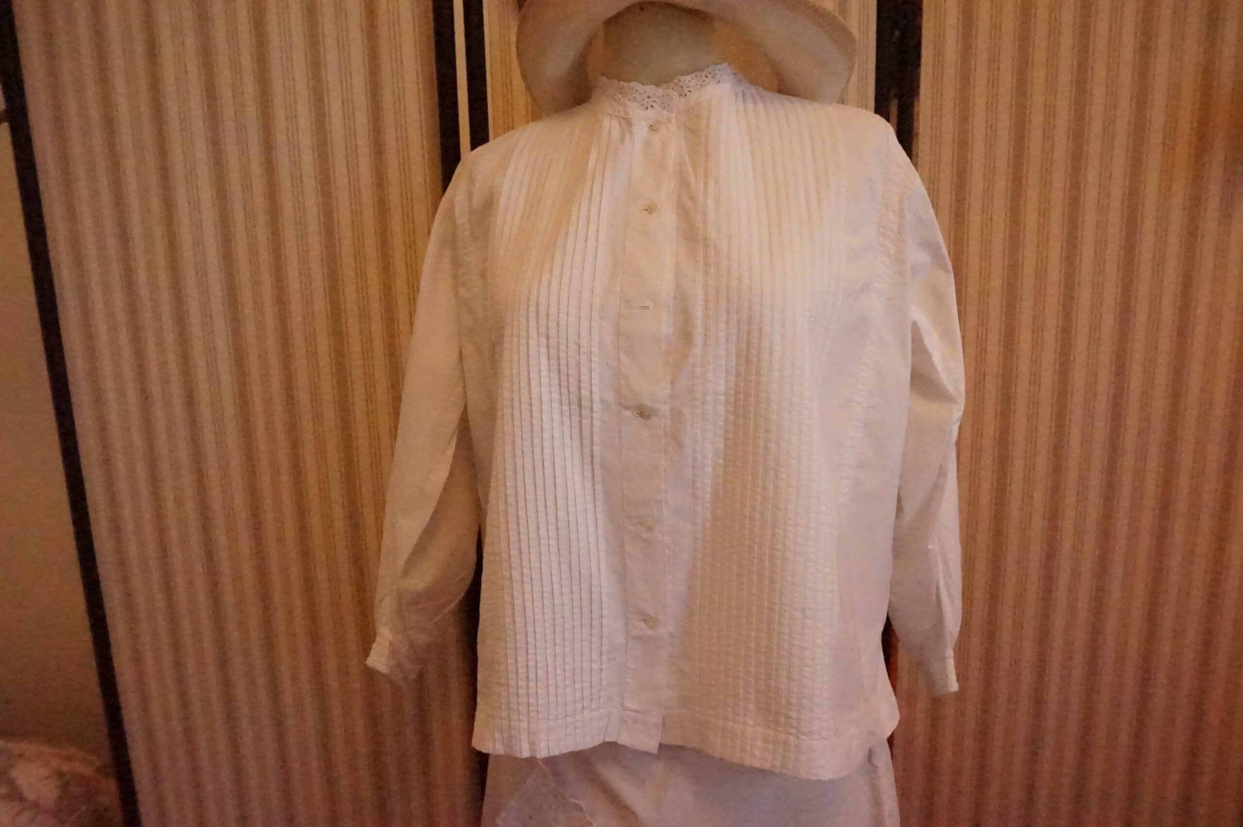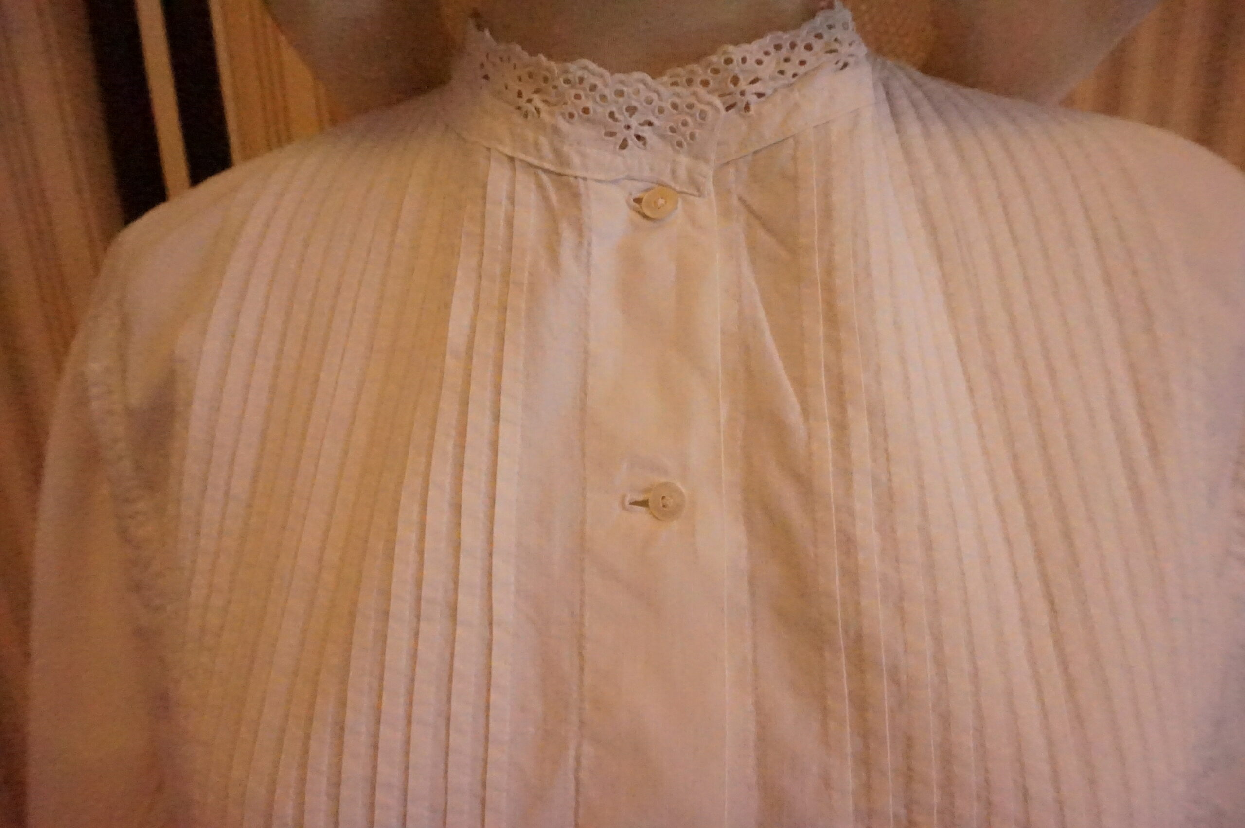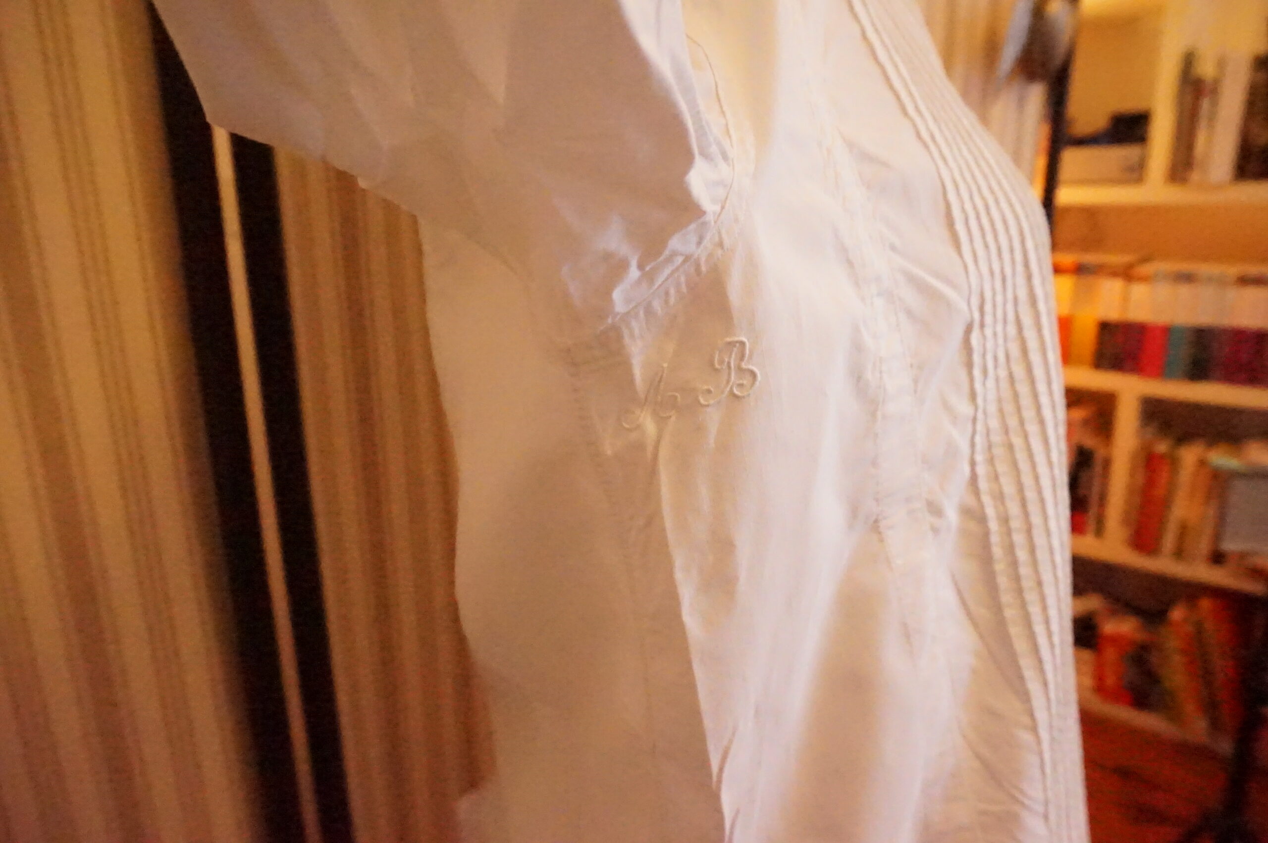Très joli chemisier délicat avec monogramme brodé sous le bras « AB », de taille S, col brodé et manchettes travaillées.