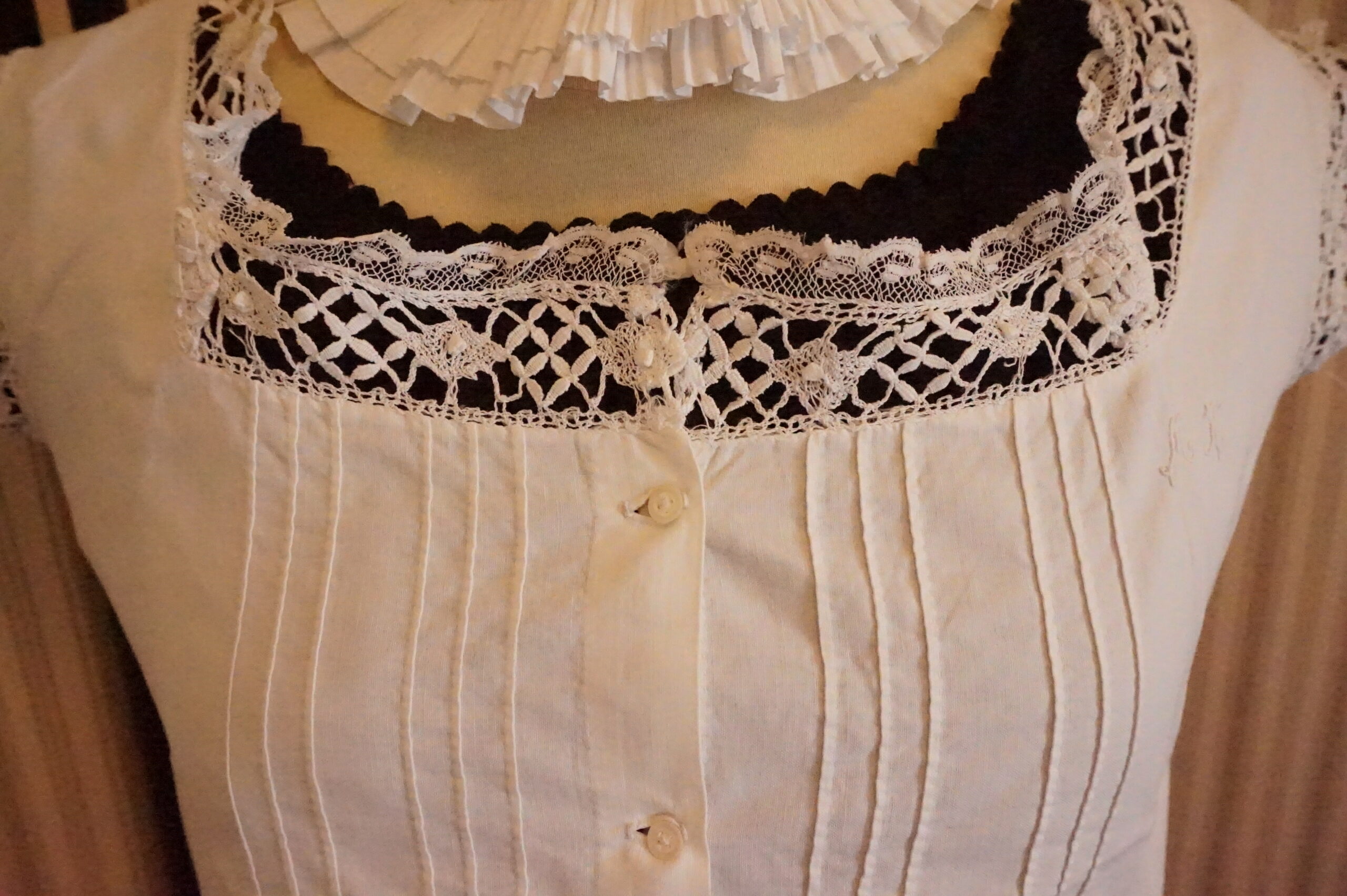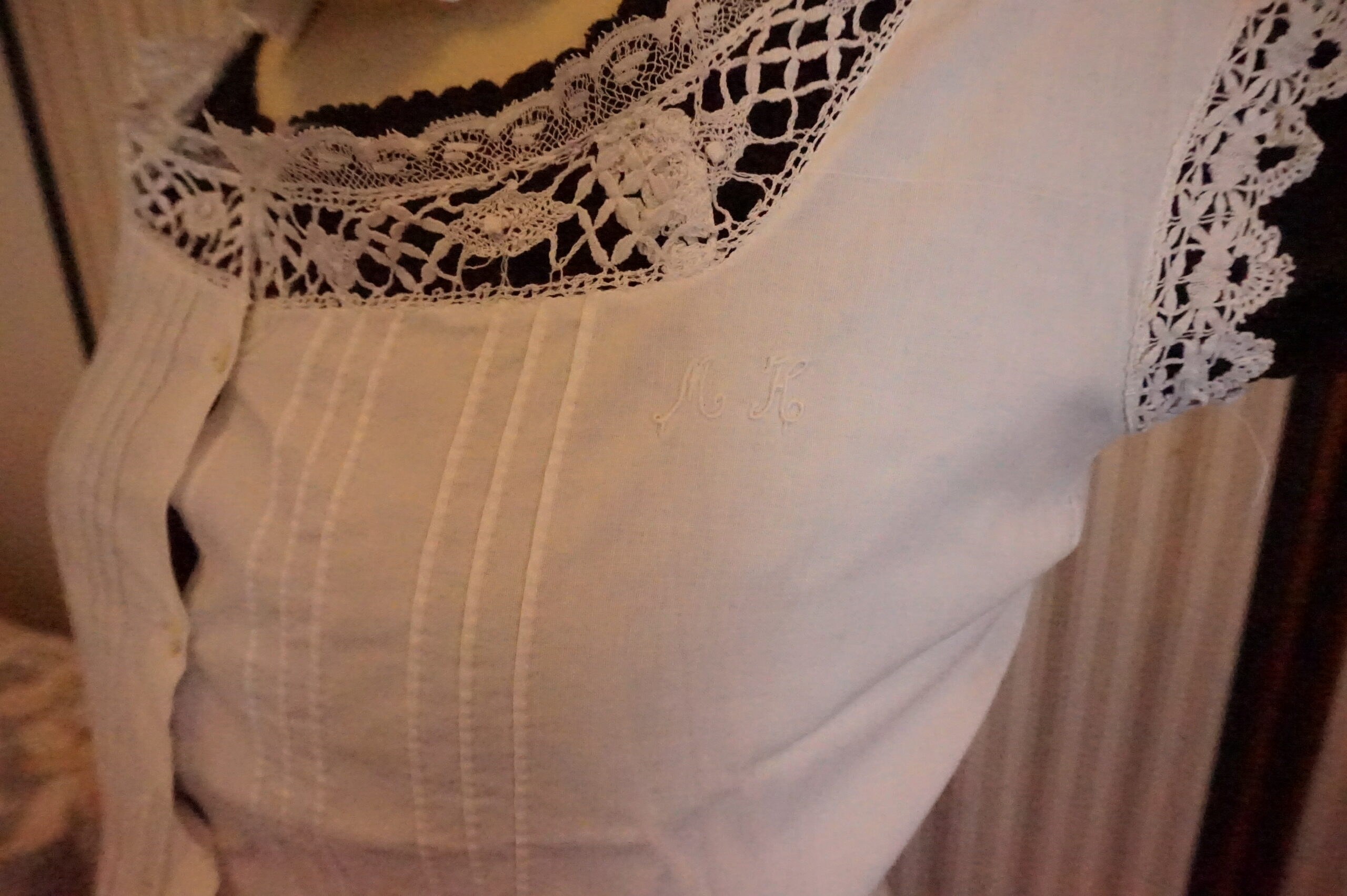 Exceptionnel débardeur en dentelle, cintré, monogramme brodé « MH », cintré à la taille, en taille S/M