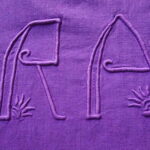 Il porte un monogramme RA élégant, à la fois délicat dans son dessin et imposant par sa présence. La pièce a été teinte dans notre atelier dans un violet profond, une couleur rare, vibrante et contemporaine, qui met en valeur la texture du lin et donne à la pièce une aura singulière.