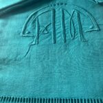 Il a été teint par vos soins dans une nuance émeraude profonde, vibrante et élégante. La teinture artisanale révèle magnifiquement les reliefs du monogramme et des broderies, créant une pièce unique, pleine de caractère et de nuances.