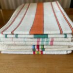 Un ensemble joyeux et authentique de torchons anciens aux couleurs variées, chacun portant la douceur du temps et le charme du linge d’autrefois.