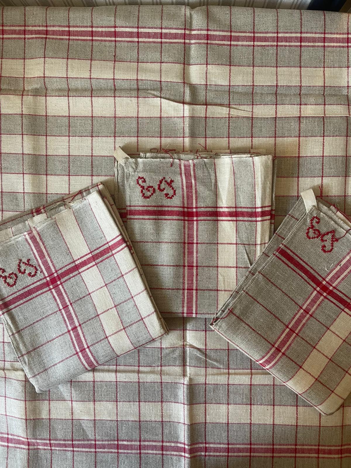 «Nappe blanche, damassée, brodée VA 130/185 cm» a été ajouté à votre panier. Poursuivre les achats Accueil / Torchons / Magnifique lot de 4 torchons brodés EF 65/80 cmMagnifique lot de 4 torchons brodés EF 65/80 cm48,00 € 1 en stock - quantité de Magnifique lot de 4 torchons brodés EF 65/80 cm + Ajouter au panier UGS : TC07 Catégorie : Torchons Description Avis (0) Description Magnifique lot de 4 torchons brodés EF 65/80 cm Avis Il n’y a pas encore d’avis. Soyez le premier à laisser votre avis sur “Magnifique lot de 4 torchons brodés EF 65/80 cm” Annuler la réponseVotre adresse e-mail ne sera pas publiée. Les champs obligatoires sont indiqués avec *Votre note * Évaluation... Parfait Bon Moyen Pas mal Très mauvais Votre avis *Nom * E-mail * Enregistrer mon nom, mon e-mail et mon site dans le navigateur pour mon prochain commentaire. Δ ← Lot de 4 torchons anciens brodés BF 55/60 cm Magnifique lot de 6 serviettes de toilette, délicatement brodées, ajourées 60/110 cm → Vous aimerez peut-être aussi Drap émeraude 200/320 avec 2 taies d’oreiller 50/60Linge de lit 130,00 € Ajouter au panier 10 serviettes de table 67/73 damassées et brodéesServiettes de table 60,00 € Ajouter au panier Chemisier femme bordure brodéeVêtements 40,00 € Ajouter au panier Lot de 6 torchons anciens très bon état 55/80Torchons 55,00 € Ajouter au panier 5 serviettes de toilette, éponge, broderie et frange délicates 58/85 cmServiettes de bain 30,00 € Ajouter au panier Lot de 6 torchons en lin 55/75 état global moyenTorchons 60,00 € Ajouter au panier