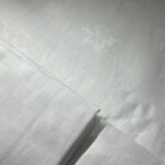 Cet ensemble ancien réunit une nappe damassée de 160 × 240 cm et douze serviettes assorties, offrant une harmonie parfaite pour dresser une table raffinée. Le damassé, lumineux et délicatement tissé, crée de beaux jeux de lumière et apporte une présence élégante, typique du linge de maison d’autrefois.
