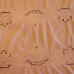 Exceptionnelle nappe ancienne, travaillée dans une matière noble et douce, sublimée par de délicats ajours et une broderie raffinée. Son tissage élégant et son tombé souple en font une pièce d’une grande distinction, idéale pour habiller une table avec charme et sobriété.