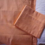 Très jolie paire de taies d’oreiller anciennes, travaillées dans un coton ancien souple et lumineux, et sublimées par une teinture artisanale réalisée dans notre atelier. La couleur orange melon, douce et chaleureuse, met en valeur la texture du tissu et donne à ces pièces un caractère unique.