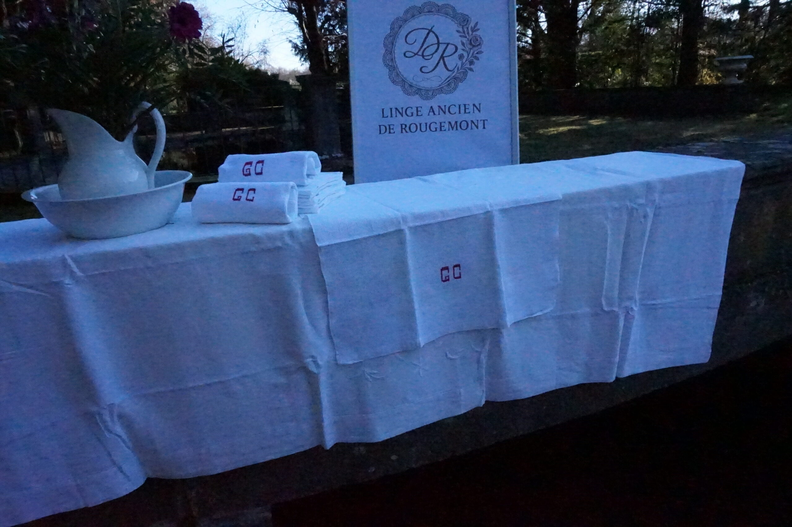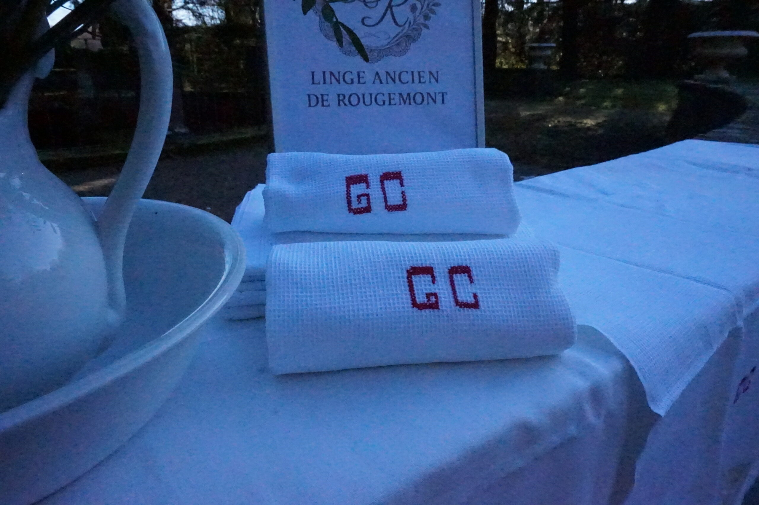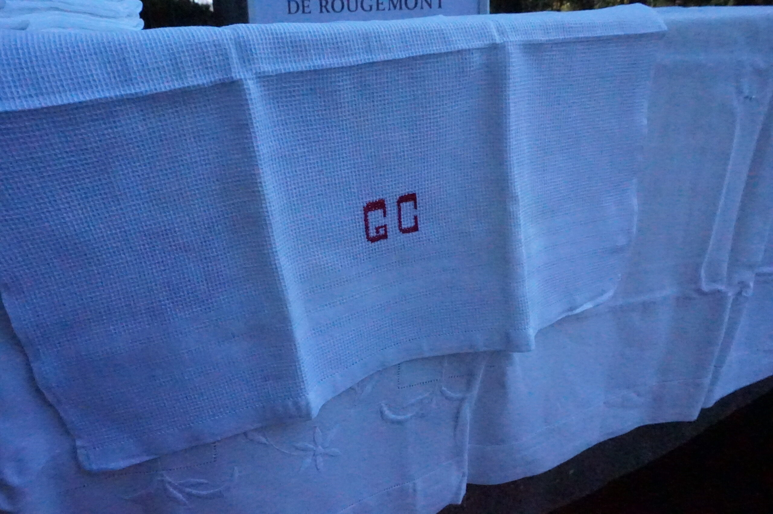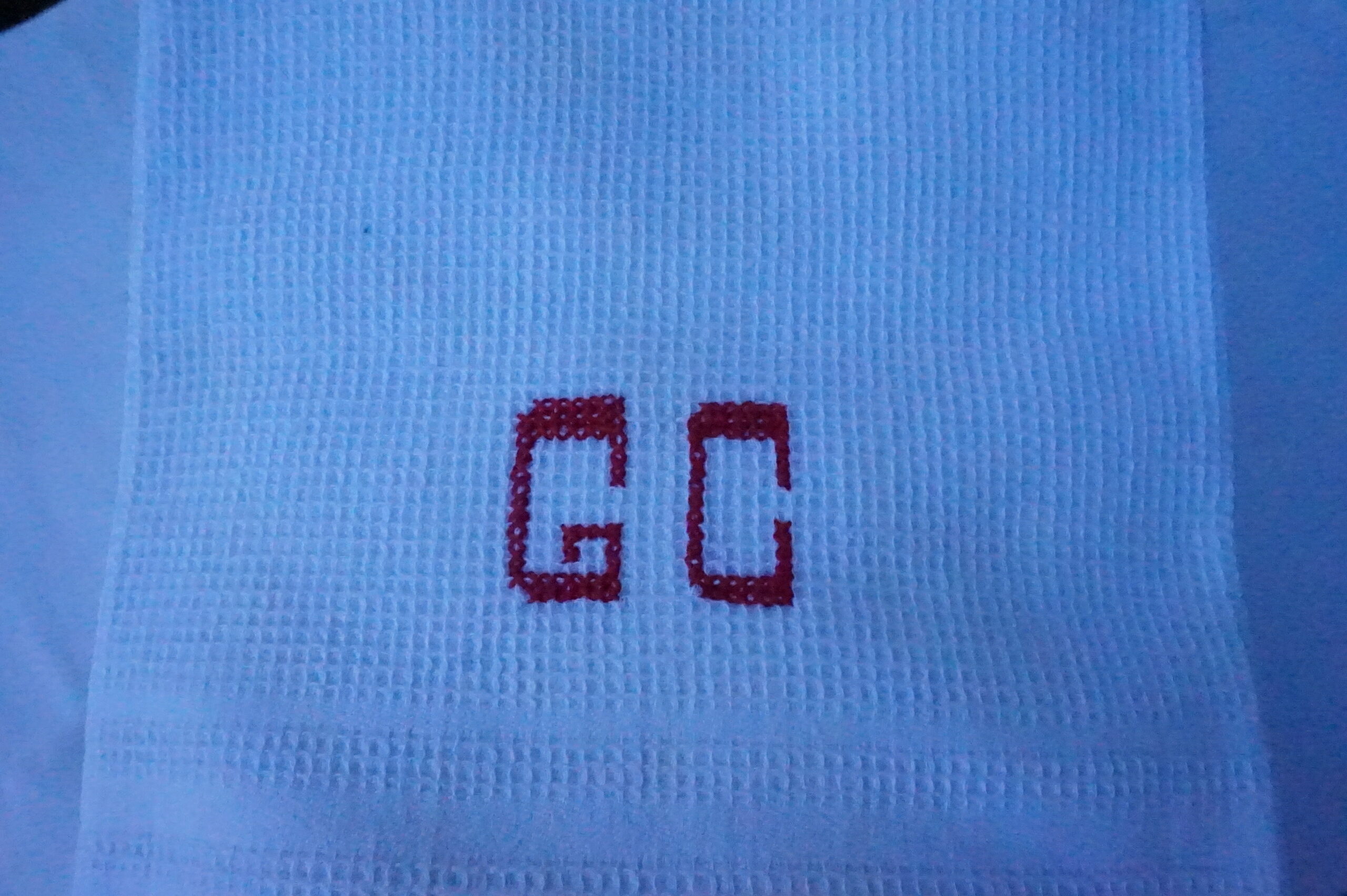 Lot de 9 serviettes de Bain , brodées GC, bordures simples et légèrement ajourées, dimensions 55/75 cm.