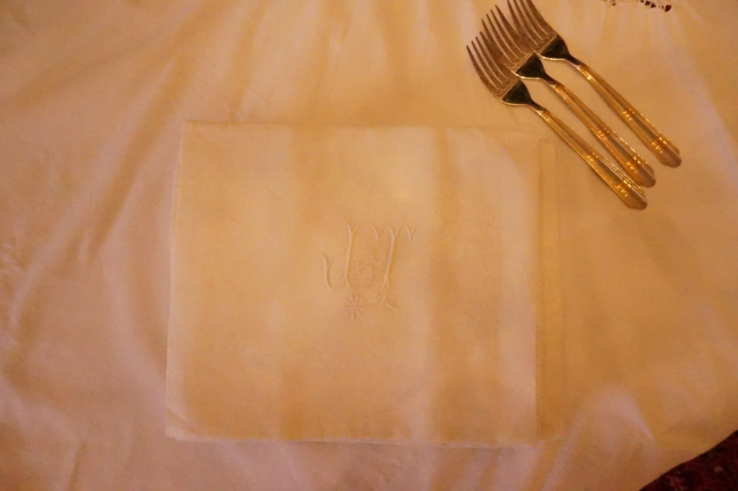 10 Très jolies serviettes de table brodées aux initiales JT, dimensions 65/75 , parfait pour embellir une jolie table.