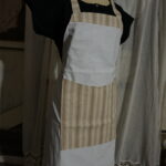 Ce tablier à bavette est une création fait main, réalisé à partir de chutes de draps anciens et de tissu d’ameublement, ce qui en fait une pièce unique, durable et pleine de caractère. La matière mixte lui donne une belle tenue et un charme authentique, idéal pour un usage quotidien ou décoratif.