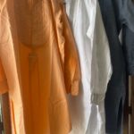 Chaque pièce est teinte à la main dans ton atelier, couleur par couleur, bain après bain. La teinture artisanale crée des nuances subtiles, des variations naturelles, et donne à chaque tunique une personnalité propre — aucune n’est identique.